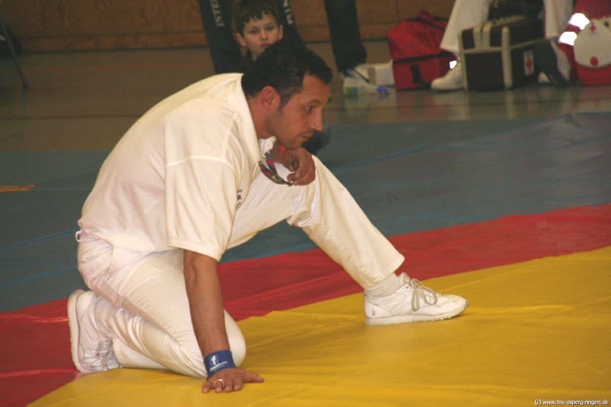 Und nun zu unserer Rubrik „Tobias erklärt den Ringsport“ – „Wer ist eigentlich der dritte Mann auf der Matte?!?“ Wie in jeder anderen Sportart, gibt es natürlich auch bei uns „Raufern“ einen der dafür Sorge zu tragen hat, dass alles sauber, fair und harmonisch abläuft – Man nennt diese Personen auch Schiedsrichter oder auch Unparteiischen. Herr auf der Matte, mit Befehlsgewalt über die Punkte, entscheidet diese erhabene Person über Sieg oder Niederlage einer Mannschaft / eines Ringers. Spannender als vielleicht bei anderen Sportarten ist, dass auf Grund unseres großen Regelwerkes, manche Sachen vielleicht zweideutig gewertet / geahndet werden könnten. Dies wiederum führt zu tumultartigen Szenen bei den Zuschauern und hat zur Folge das eine einzigartige, spannungsgeladene Stimmung vorherrscht. Auch dafür lieben wir unsere Jiris. Damit der Mattenleiter sich nun abhebt von den Ringern ist dieser immer an seiner Weißen Ausführung (Weißes Hemd / Weiße Hose / Weiße Socken / Schwarze Schuhe ) zu erkennen. Außerdem trägt er an jeden Arm ein „Schweißband“, eines davon Blau, eines Rot, um die Punkte dem richtigen Ringer zuordnen zu können. Und wie in allen anderen Sportarten auch, so ist es auch bei uns ... sei Fair zum dritten Mann.