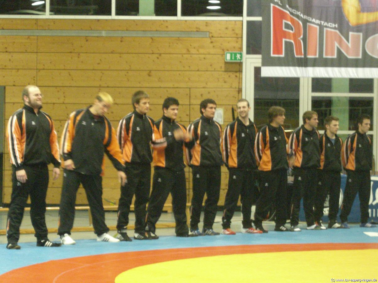 55 kg - Oliver Daubner (A) wurde kampfloser Sieger. 120 kg - Simon Fingerle (A) konnte sich mit Eduard Popp messen. In vier sehr engen Runden konnte Fingerle einen 3:1 Punktsieg erkämpfen. 60 kg - Johann Penner (A) bestimmte die Auseinandersetzung mit Dimitri Hohenstein nahezu nach belieben und schulterte den Heimringer in der dritten Runde. Zwischenstand nach 3 Kämpfen 1:11. 96 kg – Radu Hohberg (A) errang gegen Maxim Kutsch einen Schultersieg in der dritten Runde. 66 Kg A - Christian Wahlenmeier (A) wurde gegen Rene Kollmar Aufgabesieger. Pausenstand 1:19. 84 kg B - Jens Barth (A) bestimmte gegen Julian Michler das Kampfgeschehen eindeutig und verfehlte einen Überlegenheitssieg nur knapp. 66 kg A – Timo Langmann (A) wurde gegen den jungen und sehr talentierten Benedikt Petzold Überlegenheitssieger. 84 kg A –Tobias Ulamec (A) schulterte Beikant Dursan in der zweiten Runde. Zwischenstand 1:30. 74 kg A – Alexander Stephan (A) gewann in einem sehr offensiv geführten Kampf gegen Tim Espert in drei Runden. 74 kg B – Hannes Rang (A) musste sich dem deutschen Spitzenringer Mario Guldi beugen. Endstand 5:33.