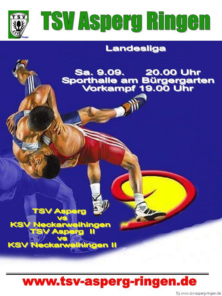 9. September Sporthalle am Bürgergarten, das große Nachbarschaftsduell: 19:00 TSV Asperg II : TSV Ludwigsburg Neckarweihingen II 20:00 TSV Asperg : TSV Ludwigsburg Neckarweihingen Der Einlauf der Mannschaften erfolgt jeweils 10 Minuten vor Kampfbeginn.