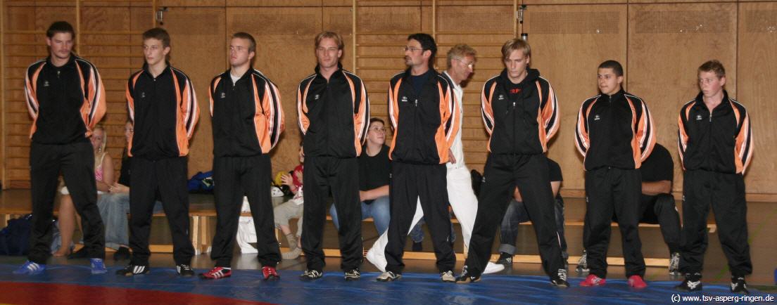 Bis 55kg konnte Eugen Minz gegen Jörg Schütz überzeugen und gewann durch Ausgabe von Jörg Schütz (0:4) 120kg- Fabian Prexl beherrschte Eugen Wieland und gewann nach 3 Runden. (0:7) 60kg-Vitali Scheer überzeigte im Bodenkampf gegen Eugen Wieland und siegte für seine Freundin auf Schulter (0:11) In der ungewohnten Gewichtsklasse bis 96kg musste Calvin Fingerle gegen den erfahrenen und 12kg schwereren Roger Aman trotz starker Gegenwehr auf die Schultern (4:11). Bis 66kg überraschte Halit Yücel durch seine starke Technik und weckte Hoffnung nach mehr. Leider musste er sich dem konditionell stärkeren Peter Wagner in der 4. Runde nach Punkten geschlagen geben. (7:12). Halit reist nächste Woche nach China um bei den Ringer WM sich neuste Tipps für die Mannschaftsrunde zu holen ;-). Viel Spass Halit! 84kg- Ralf Baumgärtner wachte nach einen überraschenden Angriff von Erdan Kürükslü in den ersten Sekunden auf, machte dann kurzen Prozess und schulterte seinen Gegner (7:16). 74kg- David Seidel hat nach einer längeren Trainingspause noch nicht zu seiner alten Form gefunden und musste sich von Sergei Burlutsky auf Schulter geschlagen geben. (11:16). 74kg- Christopher Allen verlor gegen den Doppelstarter Philip Rücker auf Schulter, dadurch gingen diese Punkte an den TSV Asperg (11:20)