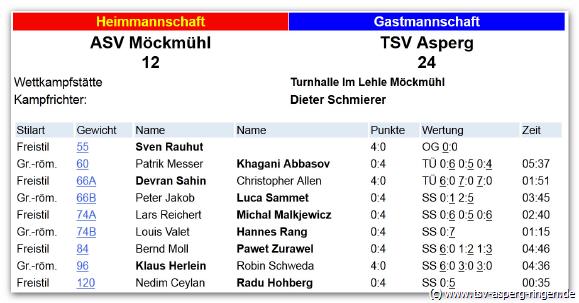 Einen technischen Überlegenheitssieg, des Leistungsträgers Dervan Sahin (ASV), konnte Christopher Allen (TSV) nicht verhindern. Trotzdem sollte sich diese taktische Umstellung, im Laufe des Mannschaftskampfes, noch als richtig erweisen.