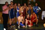 Ein besonderes Geschenk, bekam Damir aus der Ringerecke. Nicht schlecht staunte er und sicherlich auch die übrigen Gäste, als die Tür zur Umkleidekabine aufging und neun ehemalige Jugendringer des ASV Oßweil in Ringertrikots aufliefen.
