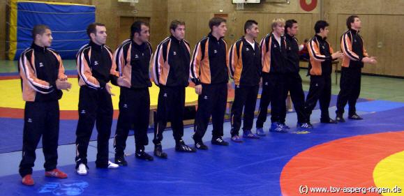 Vitalij Scheer konnte trotz gerade überstandener Grippe gegen den starken Salvatore Aloi nach Punkten siegen. Daniel Wagner sah bereits wie der Verlierer gegen Oliver Lutz aus. Mit einer enormen Energieleistung setzte Daniel Wagner die letzten Kräfte frei und legte die letzen Reserven in die entscheidende Situation zum Schultersieg. Faton Ternava hatte gegen Claudio Aloi wenig Mühe und siegte durch technische Überlegenheit. Radu Hohberg nutzte die erste Chance zum Schultersieg gegen Dieter Lautenbach. Im letzten Kampf vor der Pause siegte Timo Langmann im spannendsten Kampf des Abends gegen den starken Daniel Herrmann nach Punkten. Halbzeitstand 0:16,5 für die RG Asperg/ Ossweil. Tobias Ulamec besiegte nach überlegener Kampfführung Jens Löbe durch technische Überlegenheit. David Seidel vertrat Wahlenmeier gegen Simon Laux gut. In dem von Seidel ungeliebten freien Stil überraschte Seidel mit einem sauber herausgerungenen Schultersieg. Eyüp Yesilirmak musste verletzungsbedingt gegen Heiko Schneider aufgeben. Hannes Rang unterlag Sebastian Weidt sehr unglücklich. Suat Sevsay schloss den Mannschaftskampf mit einem Überlegenheitssieg gegen Martin Eberbach ab. Endstand 8:28,5.