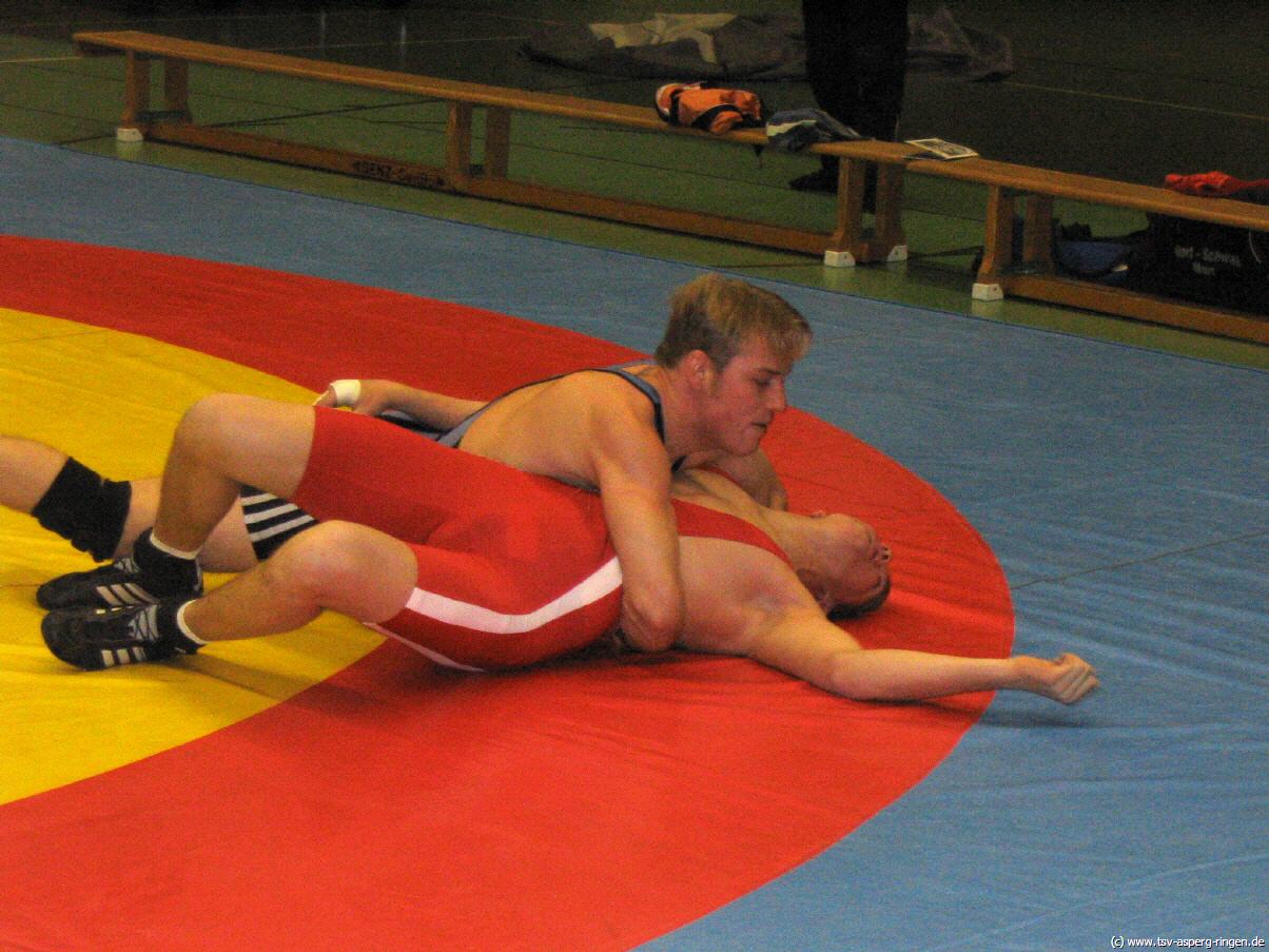 Im Letzten Kampf der Saison in Marbach konnte die RG Asperg/Ossweil voll überzeugen. Vitalij Scheer und der junge Dennis Eiselt lieferten sich einen spannenden Kampf, mit dem glücklicheren Ende für Scheer. Daniel Wagner siegte gegen Peter Eiselt durch Aufgabe. Faton Ternava Lukas Pfeiffer schultern. Radu Hohberg nutzte die erste Chance zum Schultersieg gegen Stefan Probst. Timo Langmann wurde gegen Markus Götz Aufgabesieger. Halbzeitstand 0:18,5 für die RG Asperg/ Ossweil. Tobias Ulamec schulterte Matthias Hafenrichter. David Seidel wurde kampfloser Sieger. Ralf Baumgärtner konnte bei seinem Überlegenheitssieg gegen Stefan Hafenrichter überzeugen. Hannes Rang wurde kampfloser Sieger. Suat Sevsay schloss den Mannschaftskampf mit einem Überlegenheitssieg gegen den jungen Denis Kohler ab. Endstand 0:38,5.