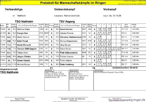 Nattheim – Gegen eine starke Nattheimer Mannschaft wäre ein klarer Sieg drin gewesen, doch fragwürdige Entscheidungen des Kampfrichters vereiteln den eigentlich verdienten Erfolg. Ein in Bestform auflaufender Kevin Henkel (55kg/FS) ließ seinem körperlich stärken Gegner Matthias Majer keine Chance und holte sich einen überragenden Punktsieg. Radu Hohberg (120kg/GR) traf auf den deutlich schwereren Michael Burger. Mit überzeugender Leistung dominierte Hohberg den Kampf, er musste seinen Gegner aber dreimal auf die Schultern legen ehe der Kampfrichter den Kampf beendete. Johann Penner (60kg/GR) hatte mit Cengiz Sen einen gut eingestellten Widersacher und verlor knapp nach Punkten. Tufan Göksel (96kg/F) hatte gegen den ungarischen Ausnahmeringer Gabor Kocis keine Chance und verlor noch oin der ersten Runde entscheidend. Christian Wahlenmeier (66kg/F) ließ Martin Maurer wenig Chancen zum entfalten und holte letztendlich einen verdienten Schultersieg. Obwohl Tobias Ulamec (84kg/GR) den routinierten Jürgen Trinkle klar auf die Schulter legte, blieb der Pfiff des Kampfrichters aus. Letztendlich verlor Ulamec knapp nach Punkten. Murtuz Magomedov (66kg/Gr) hatte mit dem 1.Liga Ringer Safet Ferad alle Hände voll zu tun. Nach ansehnlicher Leistung unterlag er aber letztendlich nach Punkten. Piotr Gabrynowicz (84kg/F) dominierte gegen Tobias Kuhn nach Belieben. Nach drei Runden wurde er klarer Überlegenheitssieger. Jörg Sänger (74kg/F) zeigte gegen Istvan Denzik einen hervorragenden Fight, aber auch hier waren die Entscheidungen des Kampfrichters nicht immer nachvollziehbar. Letztendlich musste er sich der Punktniederlage beugen. Im alles entscheidenden letzten Kampf des Abends traf David Seidel (74kg/GR) auf den starken Torsten Oppold. Seidel konnte nach super Kampfleistung die ersten zwei Runden für sich entscheiden, ab der dritten Runde wurde dann wieder eher einseitig für den Gegner gepfiffen. Am Schluss musste Seidel sogar noch eine umstrittene Schulterniederlage hinnehmen.