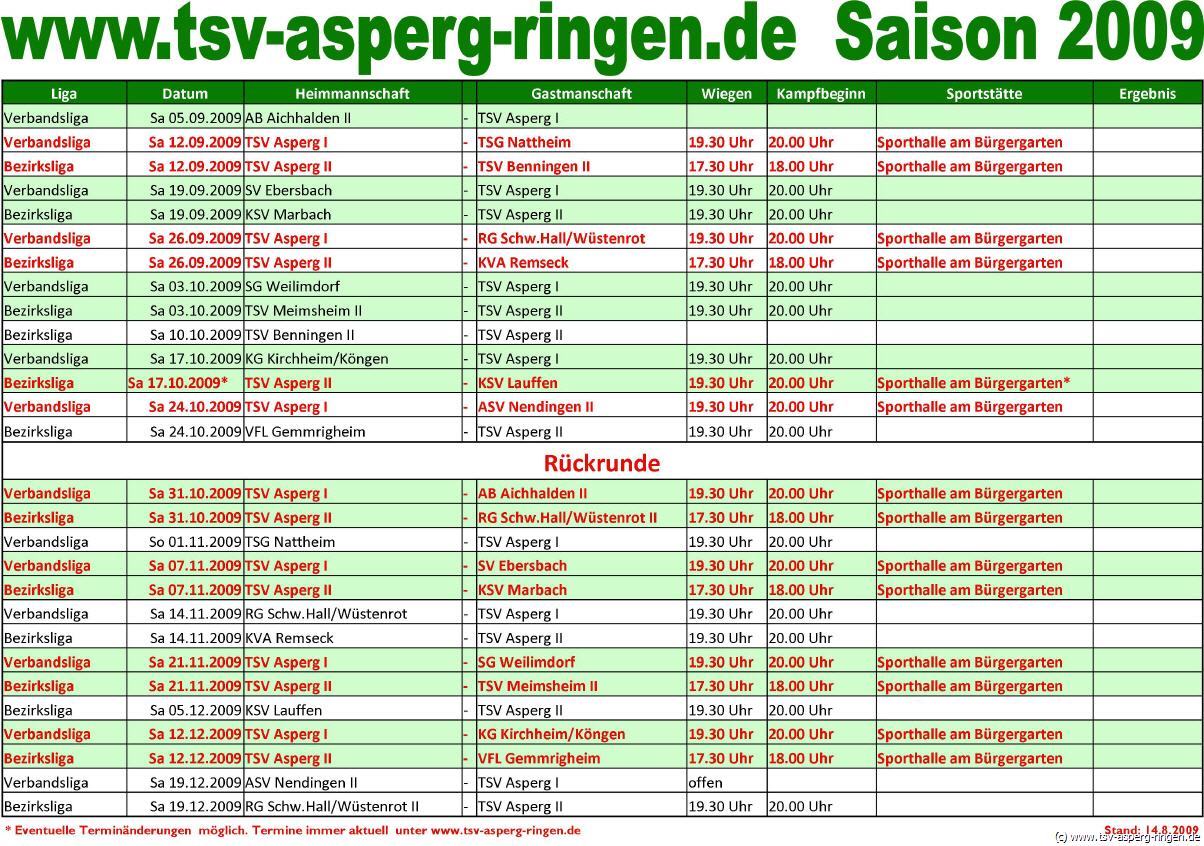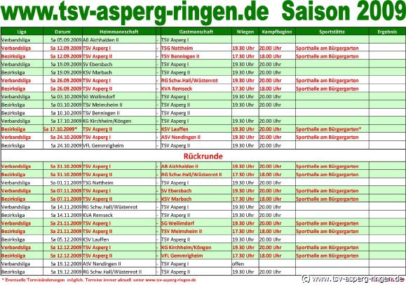 Termine Saison 2009 www.tsv-asperg-ringen.de