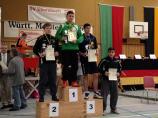 Am 01.02. und am 08.02. wurden die Württembergische Meisterschaften 2014 ausgetragen. Für den TSV Asperg gingen im Freistil in Benningen und im griechisch-römischen Stil in Ebersbach in der A-Jugend Bünyamin Sagir und Semih Saricicek auf die Matte. In der Gewichtsklasse bis 50 kg hatte Bünyamin in Benningen insgesamt 6 Gegner. Gleich im ersten Kampf traf er auf den starken Max Nutsch vom SV Ebersbach und musste sich nach zwei hart umkämpften Runden denkbar knapp mit 8:9 Punkten geschlagen geben. Die weiteren Kämpfe im Pool dominierte er deutlich und konnte sich zunächst gegen Lars Klingel mit technischer Überlegenheit und anschließend durch einen Schultersieg gegen Lars Fleischmann vorzeitig durchsetzen. Im Halbfinale traf er auf den favorisierten Henry Kluge vom TSV Benningen. Bünyamin dominierte zunächst den Kampf, musste dann aber nach einer Unachtsamkeit eine schmerzhafte Niederlage hinnehmen. Im anschließenden kleinen Finale traf er auf Abdul-Samed Bilgeoglou den er beim letzten Turnier noch deutlich bezwungen hatten. Jedoch verlief der Kampf nicht wie vom Trainer erwartet zugunsten von Bünyamin, sondern er musste nach zwei Runden eine Punktniederlage hinnehmen. Am Ende bliebt somit nur der undankbare 4. Platz. Im griechisch-römischen Stil in Ebersbach lief es für Bünyamin dann besser. Hier waren die gleichen Gegner wie am vergangenen Wochenende vertreten. Auch hier konnte sich Bünyamin gegen Lars Klingel und Lars Fleischmann vorzeitig durchsetzen. Im 3. Kampf traf er auf Henry Kluge. Starkes Nasenbluten während des Kampfes irritierte Bünyamin und so ließ er sich den Kampfstil von Henry Kluge aufzwingen, was kurz vor Schluss zu einer technischen Überlegenheit von Henry führte. Im 4. Kampf traf er auf Abdul-Samed Bilgeoglou gegen den er am letzten Wochenende noch im kleinen Finale verloren hatte. Diesmal diktierte Bünyamin das Geschehen auf der Matte und konnte einen ungefährdeten Punktsieg verbuchen. Im letzten Kampf traf er erneut auf Max Nutsch. Es kam zu einem offenen Schlagabtausch, bei dem Bünyamin leider am Ende das Nachsehen hatte. Dennoch schaffte Bünyamin am Ende mit Platz 3 den Sprung auf das Siegerpodest. Weitaus wichtiger ist jedoch die Entscheidung der WRV-Trainer, Bünyamin zu einem Vorbereitungslehrgang für die deutschen Meisterschaften Ende März einzuladen. Jetzt gilt es also für Bünyamin sich voll zu motivieren und die verbleibenden Wochen bis zu dem Lehrgang mit intensivem Training zu nutzen. Dann steht ihm der Weg zu den deutschen Meisterschaften offen.